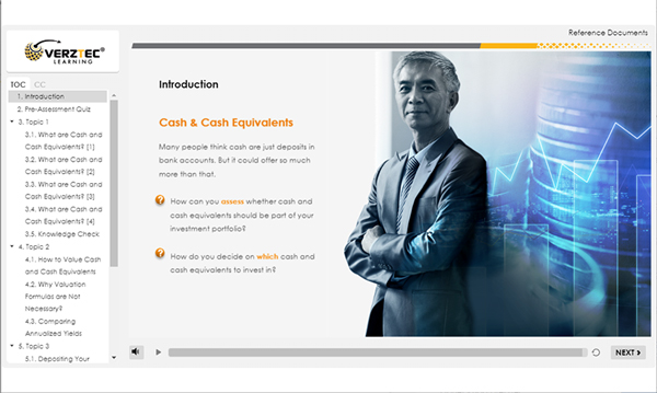 Course highlights: Introduction to cash and cash equivalents, including basic definitions, types, and risks Valuation methods, namely annualized yields and unique features Practical considerations and strategies for investors, including: Depositing cash in a bank account Deploying cash in cash equivalents Entrusting cash in money market funds And the pros and cons for each This course more info